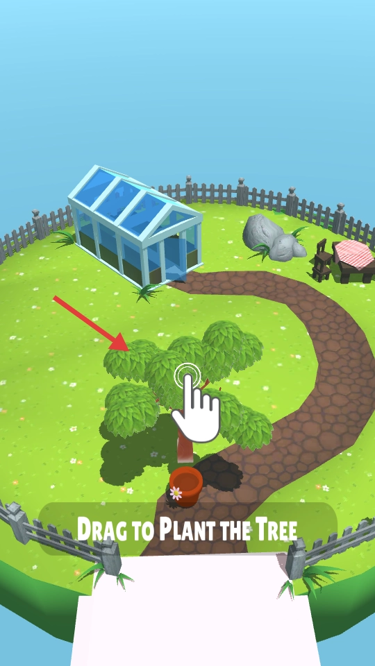 到达终点花园后,根据【DragtoPlanttheTree】的提示,拖动树苗完成种植,对花园进行装饰。
