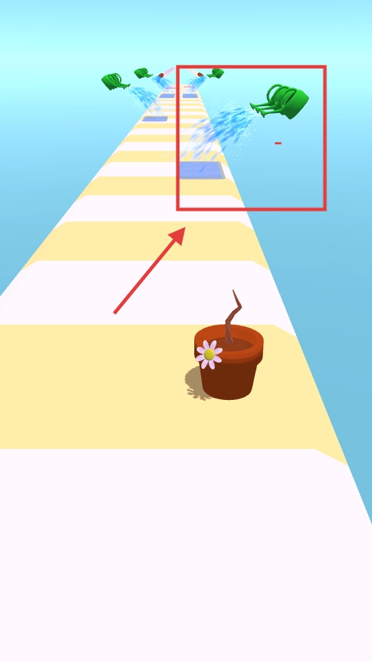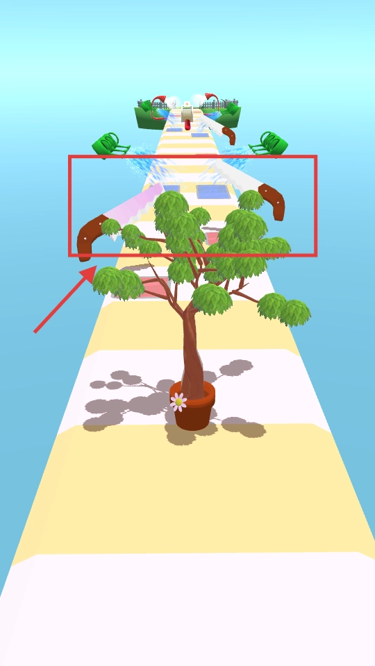 游戏开始,操控带花的盆栽树苗在跑道上前进。