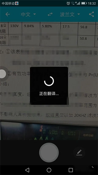 以中文翻译成波兰语为例,点击拍照后,系统会自动进行翻译。