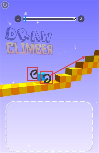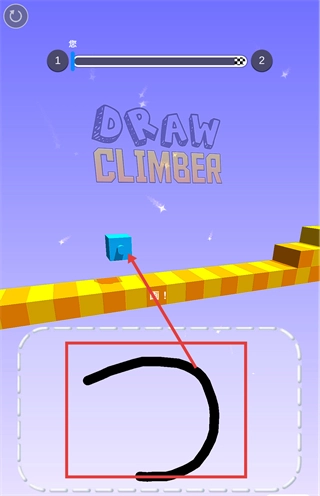 在关卡里,你可以借助下方的绘画区域绘制【曲线-形状】,以此操控【蓝色方块】的移动,从而推动【进度条-1-2】对应的关卡进程向前发展。