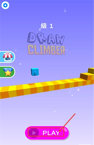 在【DRAW-CLIMBER-级1】界面中,点击【PLAY】按钮即可开启关卡,左侧的【商店】和【奖章】功能能够为后续的攀爬挑战提供辅助支持。