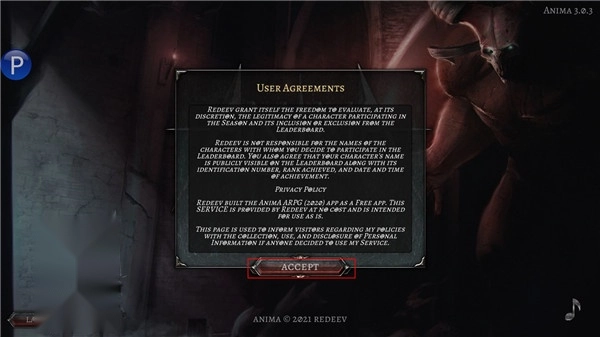 打开游戏,点击“ACCEPT”按钮以进入主界面。
