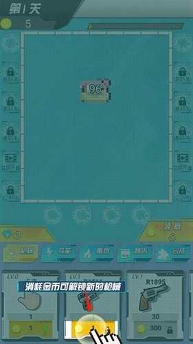 消耗金币解锁更强力的武器,对场景里的敌人展开消除。