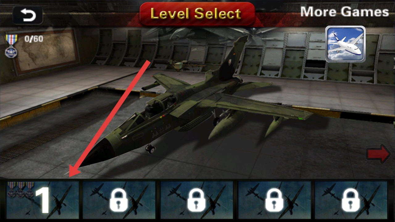 在关卡选择界面(Level Select),点击下方已解锁的1号关卡即可进入;后续关卡需完成1号关卡后才能解锁。