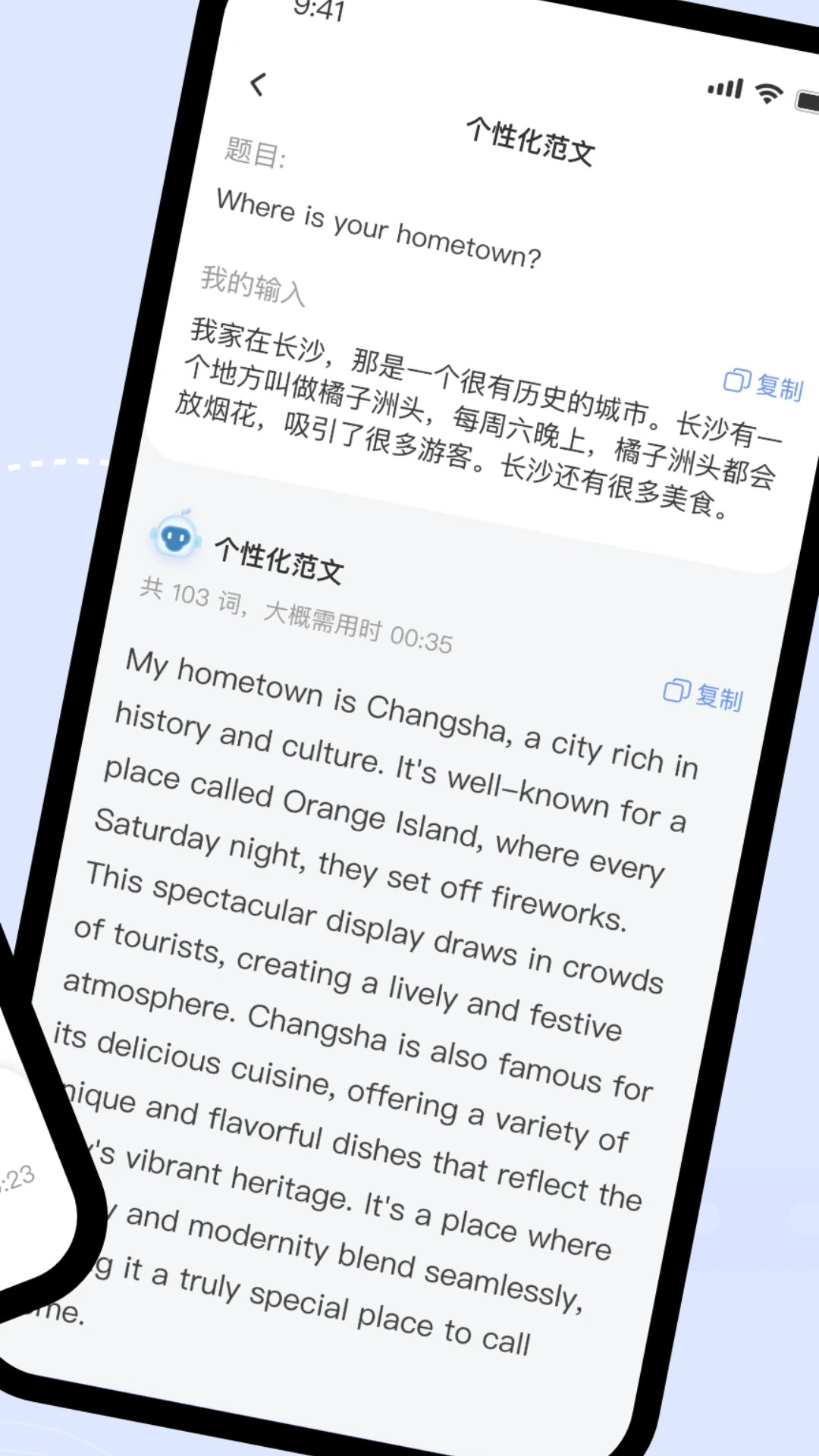 担心不会用英语表达?别着急,只需输入中文内容,猩际就能自动生成专属于你的英文答案。