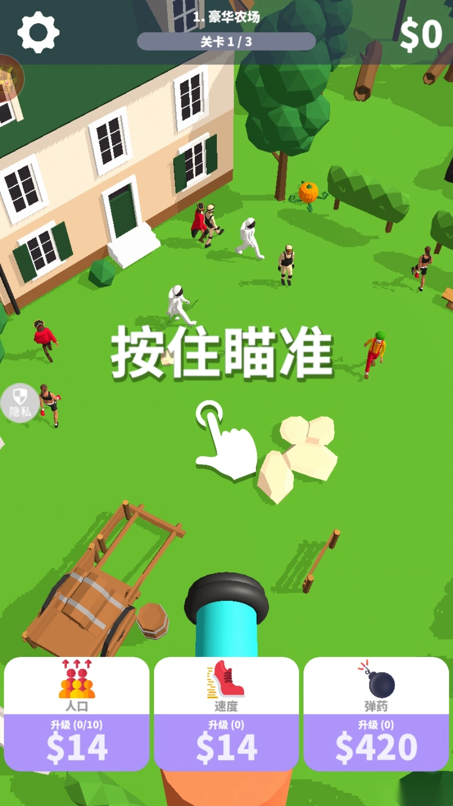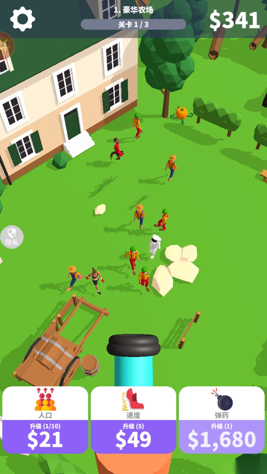 在游戏关卡增加更多人,让玩家可以一炮命中多个人,获取大量金币