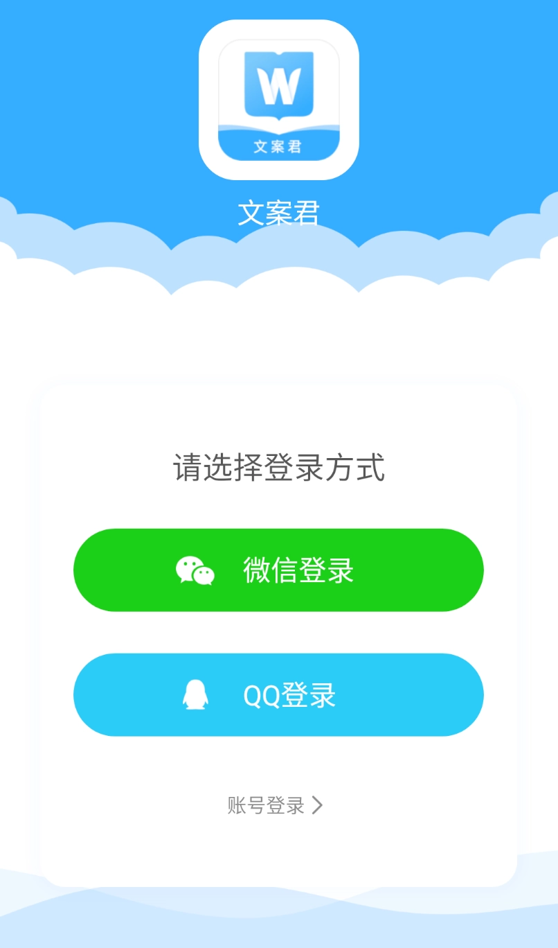 首先启动文案君软件,接着使用QQ或者微信账号来完成登录流程。