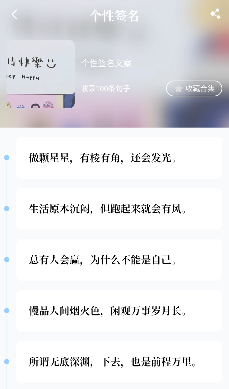 拿个性签名来说,点击这个选项就能看到各种各样的签名文案。