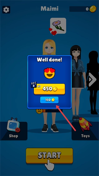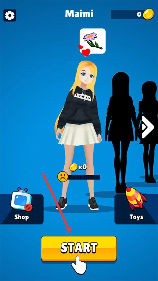 在角色【Maimi】界面点击【START】按钮,即可开启挠痒痒互动关卡,进而推进趣味挑战流程。