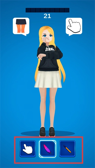 你可以挑选页面下方的互动道具(比如羽毛这类),然后对角色执行互动操作,这样就能让界面上方的数值进度得到提升。
