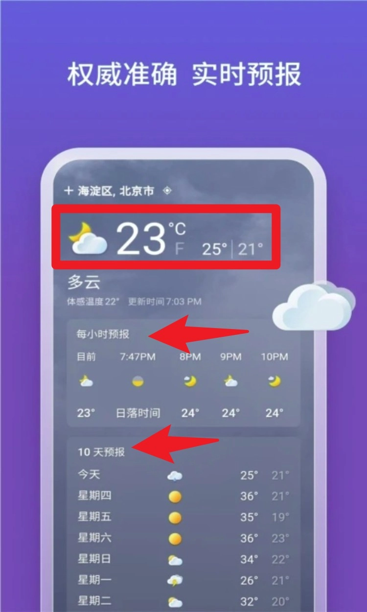 进入天气功能页面,能够查看当前温度、逐小时预报以及未来十天的天气趋势,所有信息均实时更新,非常适合作为日常出行的参考依据。