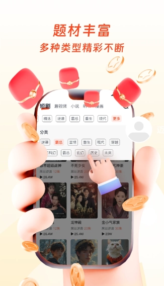 资源储备充足:短剧题材涵盖面广,更新频率高,能够适配各类用户的多元需求。