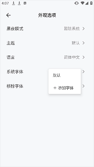 在设置界面中,我们可以对外观进行调整,还能添加字体,这些操作都能让阅读体验变得更好。