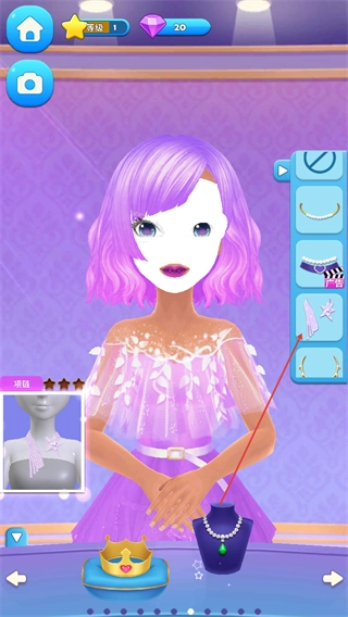 选择项链饰品样式,为角色佩戴对应装饰。
