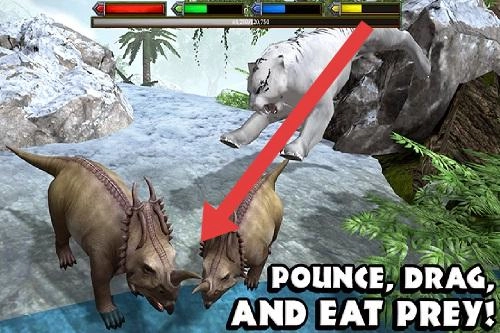 操控恐龙的行动,要是遇到的是食肉恐龙,就按照指引去追捕猎物(比如三角龙),借助地形进行埋伏、突袭,精准地发动攻击并进食。