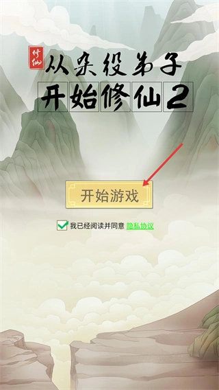 同意隐私协议后点击【开始游戏】,进入初始剧情就能领取【20】灵石,开启杂役弟子的修仙之路。