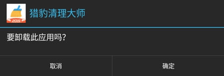 步骤4:找到【猎豹清理大师】应用,点击卸载按钮,待系统弹出是否确认卸载的提示时,选择确定即可。