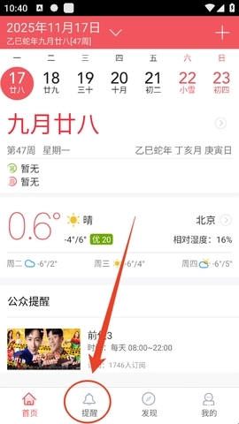 查看农历的方法很简单,只需在首页的日历区域点击“>”按钮就能进入查看。