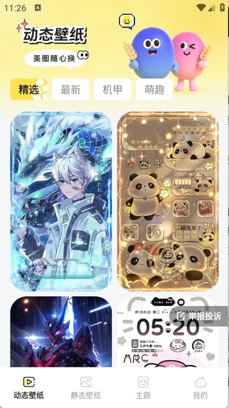 进入之后有动态壁纸、静态壁纸以及主题等类型。