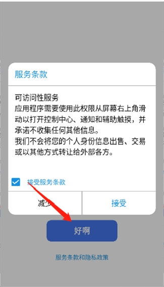 1.初次打开软件之时,需对服务条款进行勾选;