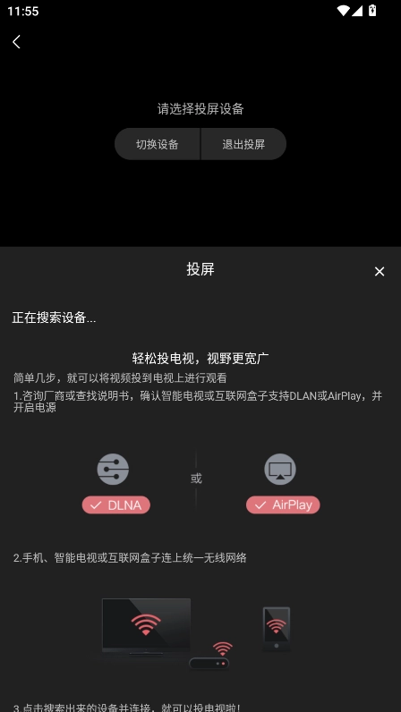 3. 确保我们的手机和电视连接到同一WiFi网络,接着点击搜索显示出的设备名称,就能开启投屏功能了。