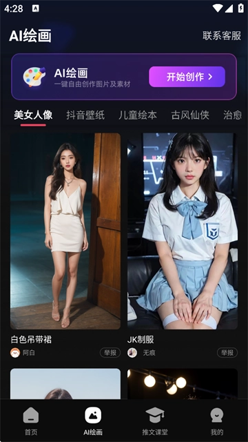 此外,软件内还配备了AI绘画功能,具体操作如下:找到心仪的模板并点击进入,随后即可一键生成同款作品。