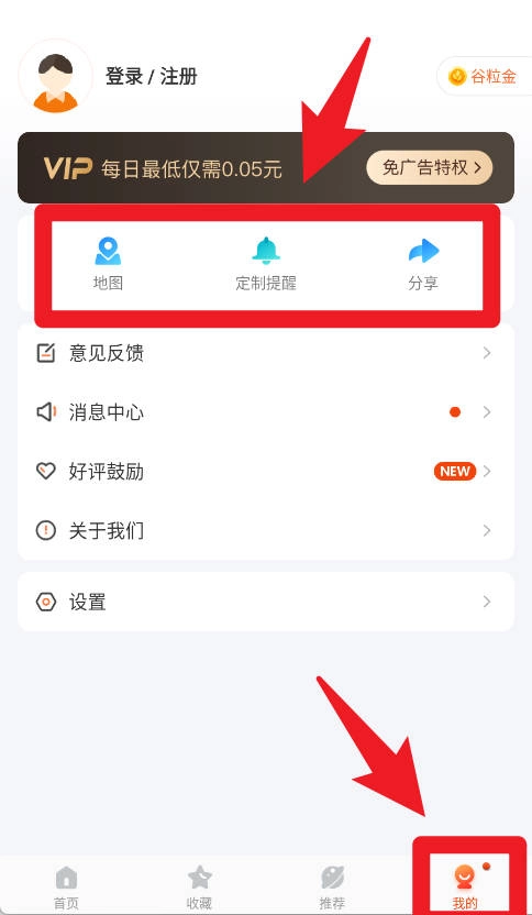 在我的页面,用户能够利用地图、设置定制提醒以及使用分享功能,同时还可以查看消息通知和个人信息,从而全方位优化使用体验。