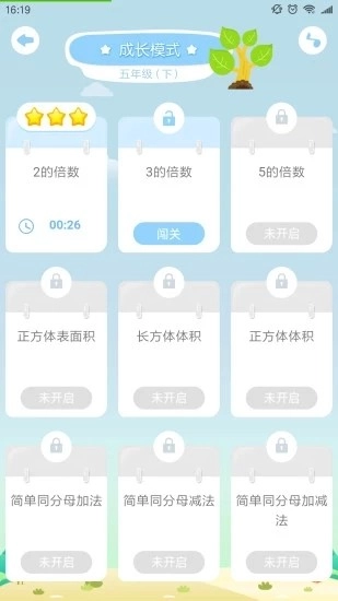 淘知口算覆盖了小学数学全年级的各个知识点,设有成长、挑战和竞技三种模式。