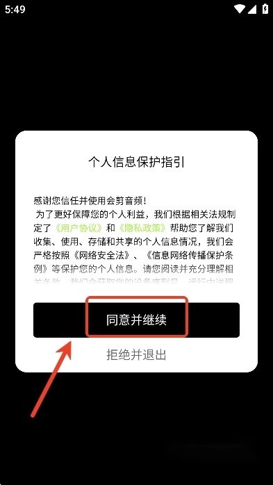 要打开的话,用户们得先点击“同意并继续”,以此同意软件的协议政策。