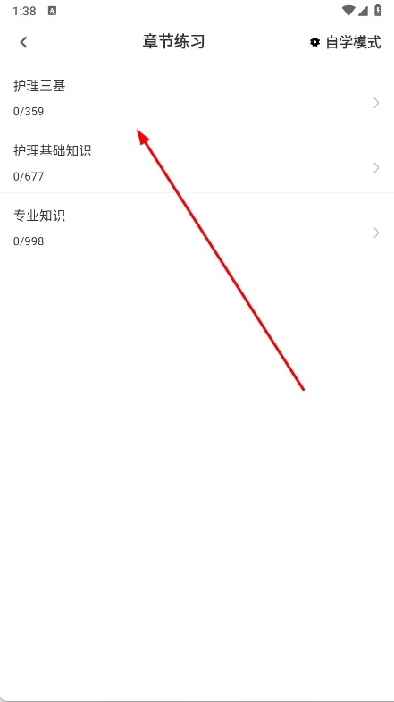 1、打开护理专业知识鸣题库,在首页选章节练习,进入练习界面。