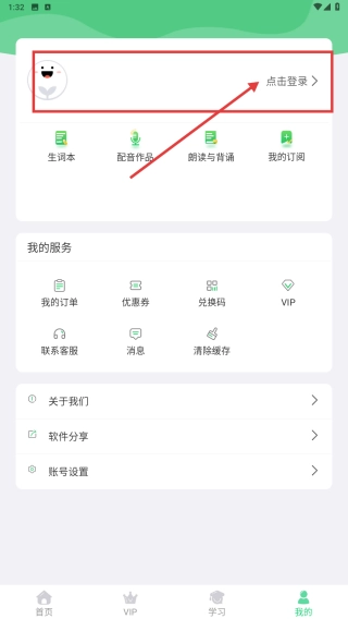 3、进入我的页面,点击点击登录区域,完成账号登录,可管理学习资料、订单等个人信息。