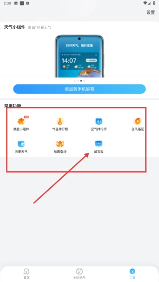 3、进入工具界面,点击穿衣预报等常用功能,获取天气对应的生活服务建议。