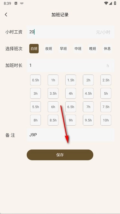 输入小时工资、班次、加班时长后点击保存即可。