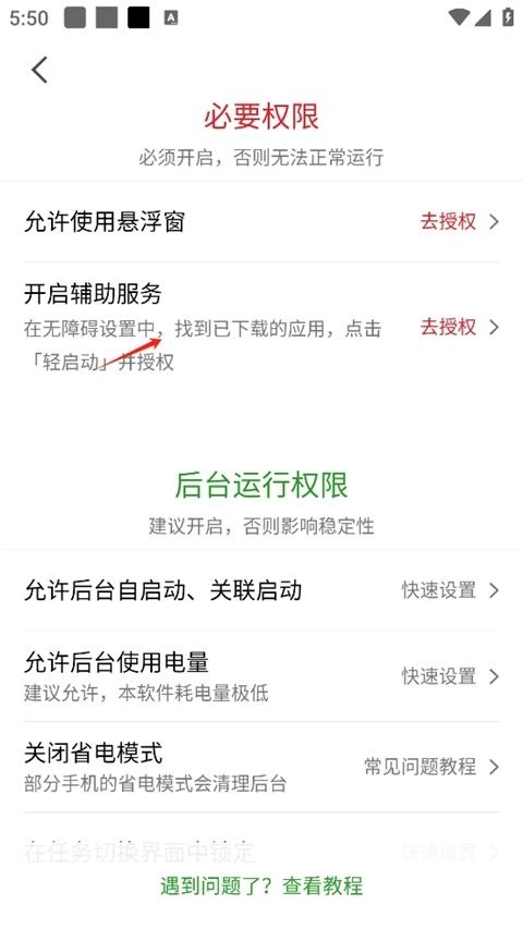 为了正常运行,请授予必要的权限,并开启辅助服务