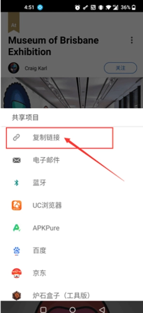 然后再点击下拉项目中的“复制链接”;