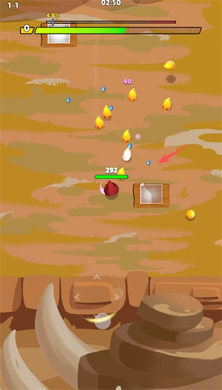 主动拾取蓝色经验来提升等级,同时借助走位牵制敌群,使追踪飞弹和技能能更高效地命中目标。