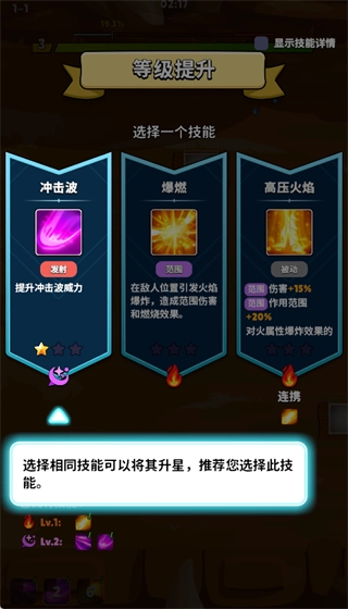 在技能升星时,建议优先选择同类型技能进行升级,这样能大幅提升技能效果,构建更完善的技能专精体系。