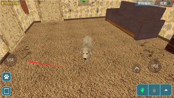 成功进入房间后,点击右下角的这个图标,就能使用道具清理垃圾了。