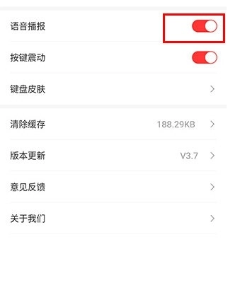 之后在打开的设置界面里,点击语音播报右侧的开关,就能切换语音播放的开启或关闭状态。