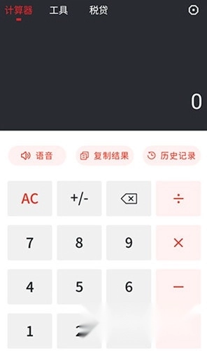 打开全能语音计算器后,首页界面的功能和普通计算器一样,点击数字和运算符号就能完成计算。