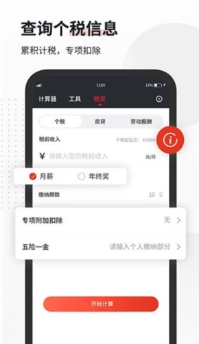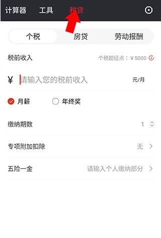若需计算房贷个税、劳动报酬等,可点击导航栏中的“税贷”进行计算。
