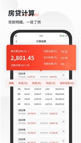 所有的房贷明细都能借助软件进行详细了解,数据呈现得十分清晰。