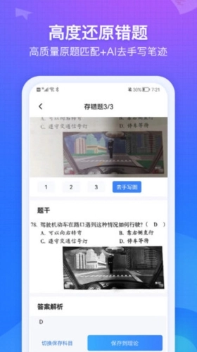 AI去手写功能,只需拍照就能将原题上的手写笔迹彻底清除,让题目恢复干净状态,方便再次用来复习。