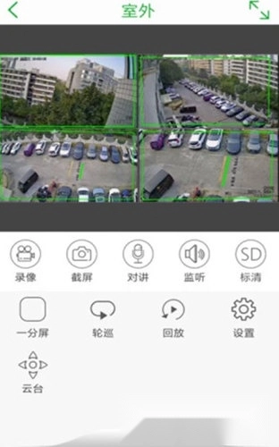 【视频预览功能说明】用户可将设备添加至视频播放窗口以查看实时画面,支持1、4、9、16种分屏模式切换。在视频播放过程中,还能执行侦听、对讲、抓拍、录像等操作。