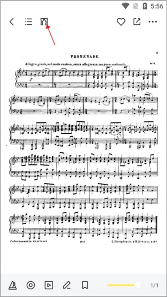 进入谱子界面后,点击曲谱左上角箭头指向的小图标。