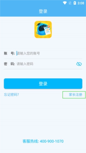 首先打开登录界面,能看到登录按钮下方有“家长注册”的小字,点击这个注册选项即可。