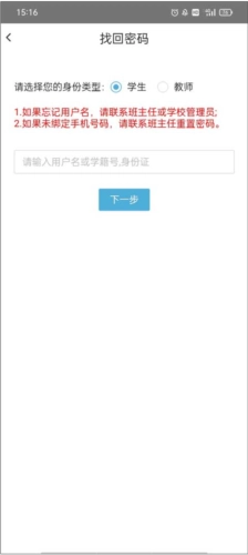 如果忘记用户名,请联系班主任或学校管理员;