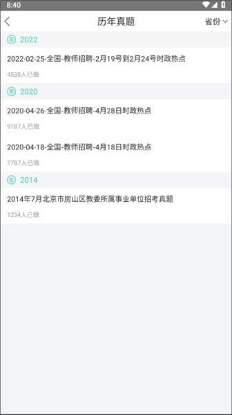 在历年真题中点击题目来练习;