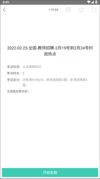 然后在这一界面找到并点击“开始答题”选项;