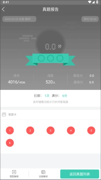现在,就能看到真题报告了,用户可以在此查看、巩固错题并进行解析。